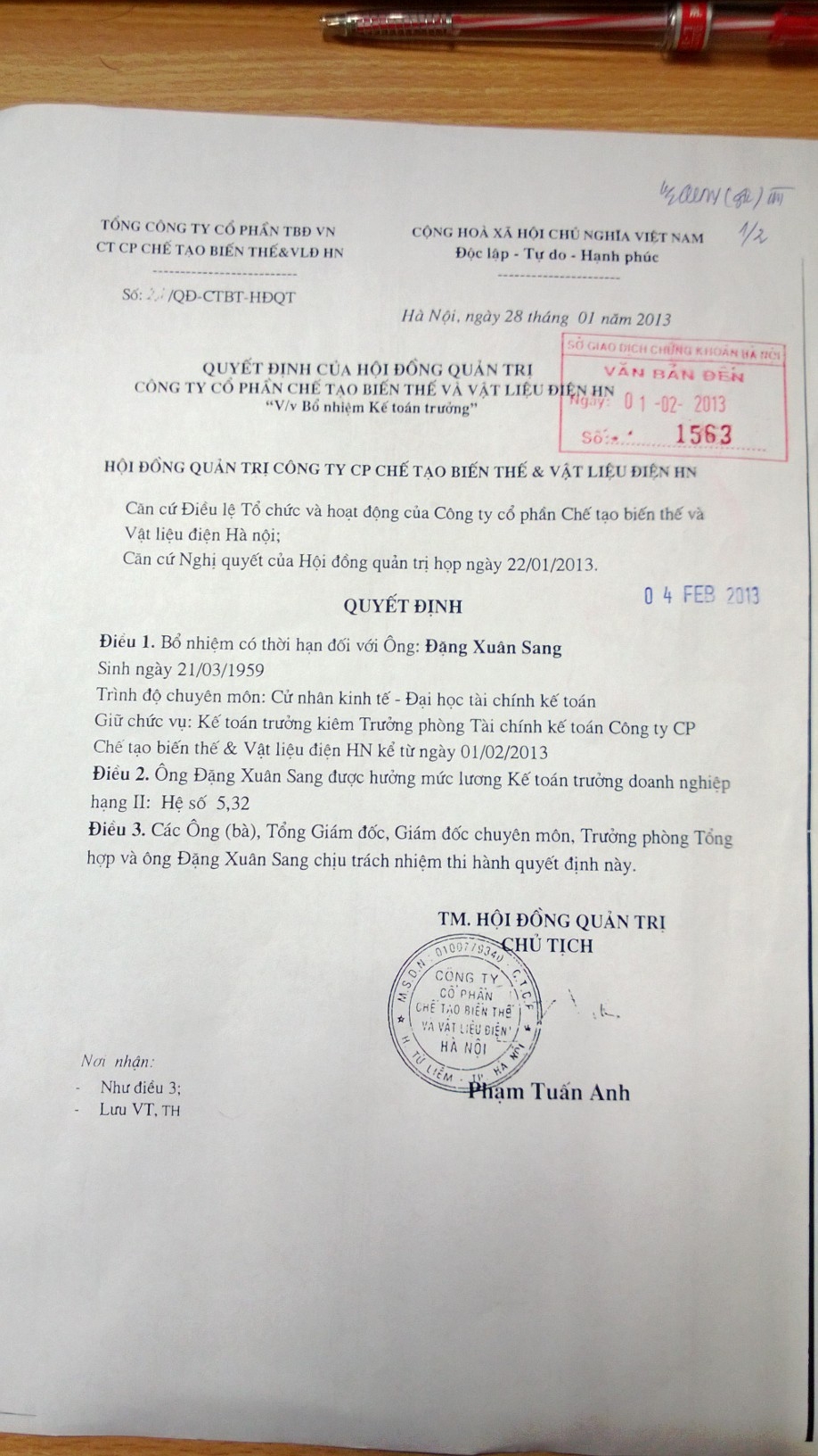 CTCP CHẾ TẠO BIẾN THẾ VÀ VẬT LIỆU ĐIỆN HÀ NỘI